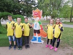Воспитанники спортивной школы изъявили огромное желание запечатлить себя с талисманом вторых Европейских игр - Лисенком Лесиком.
